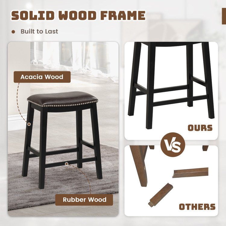 2.Built-to-last Wood Frame: Crafted with high-quality rubber wood and acacia wood, the saddle seat bar stool set offers maximum durability and stability, ensuring large capacity up to 330 lbs and long-lasting use for years to come.