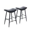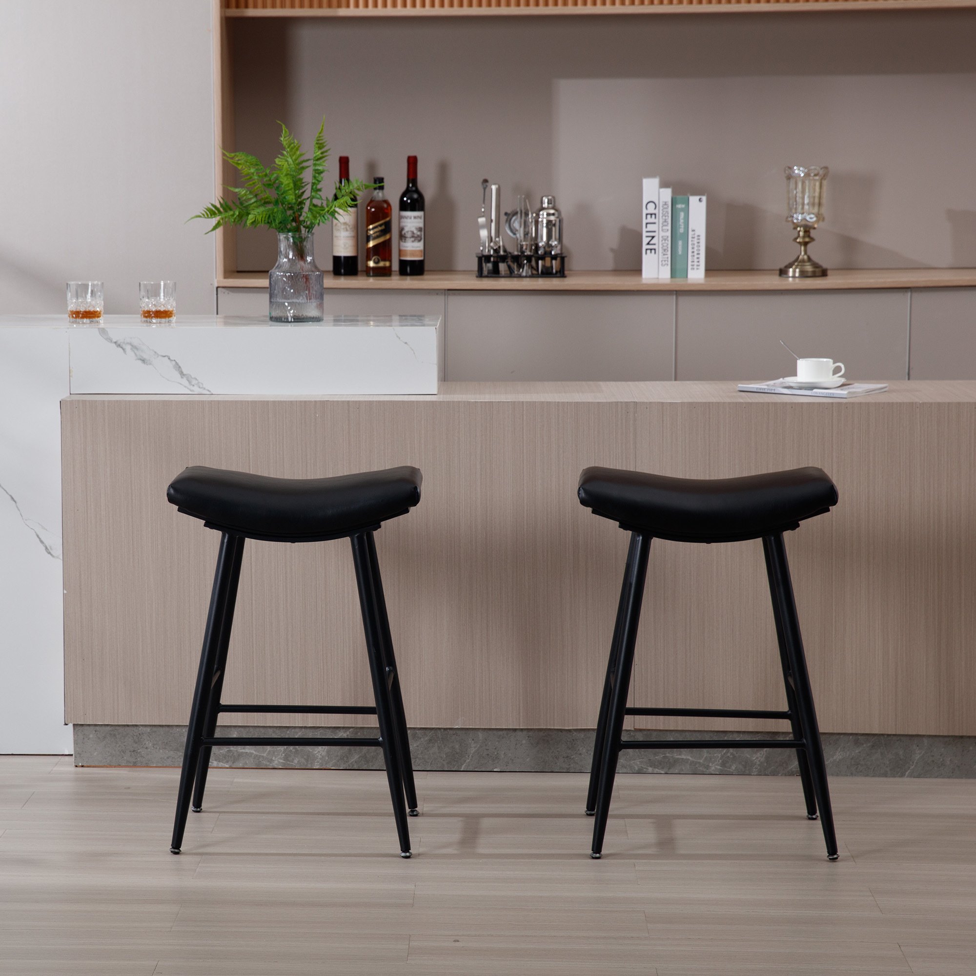 Bar Stools Set of 2 Armless Counter Low Bar Stools Without Back Modern PU Leather Stools with Metal Leg and Footrest ,Black