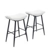 Home > Bar Stools Set of 2 Armless Counter Low Bar Stools Without Back Modern PU Leather Stools with Metal Leg and Footrest,Cream