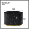 Black Marble Pattern Cocktail Table MDF with Gold Metal Base 23.62inchFeaturing a simple modern design and no any frills, this circle coffee table can be naturally integrated into a variety of home decor. With a sturdy and refined structure. The rustic coffee table is made of MDF composite. Wear-resistant coating and sturdy construction can ensure long time use and not easily damaged.PROTECT YOUR FLOOR:This cocktail table is designed with Foot pads.Main MaterialMDFGross weight26.4IbNet weight22Ibavailable colorsWhite/balckstyleModern