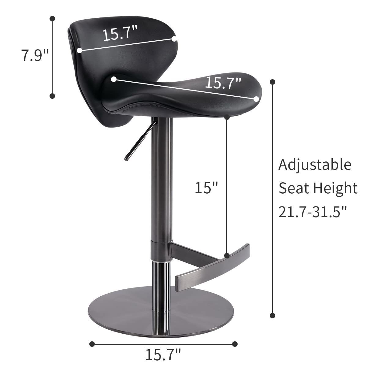 [The High-Quality of the bar Stools]15.8' diameter of the bottom,black titanium stainless steel base and gaslift cover linked footrest. Increase the weight of the base, stable and firm. BIMFA Certification Gaslife. Safe gaslift lever through exquisite craftsmanship and strict inspection is of great reliability.