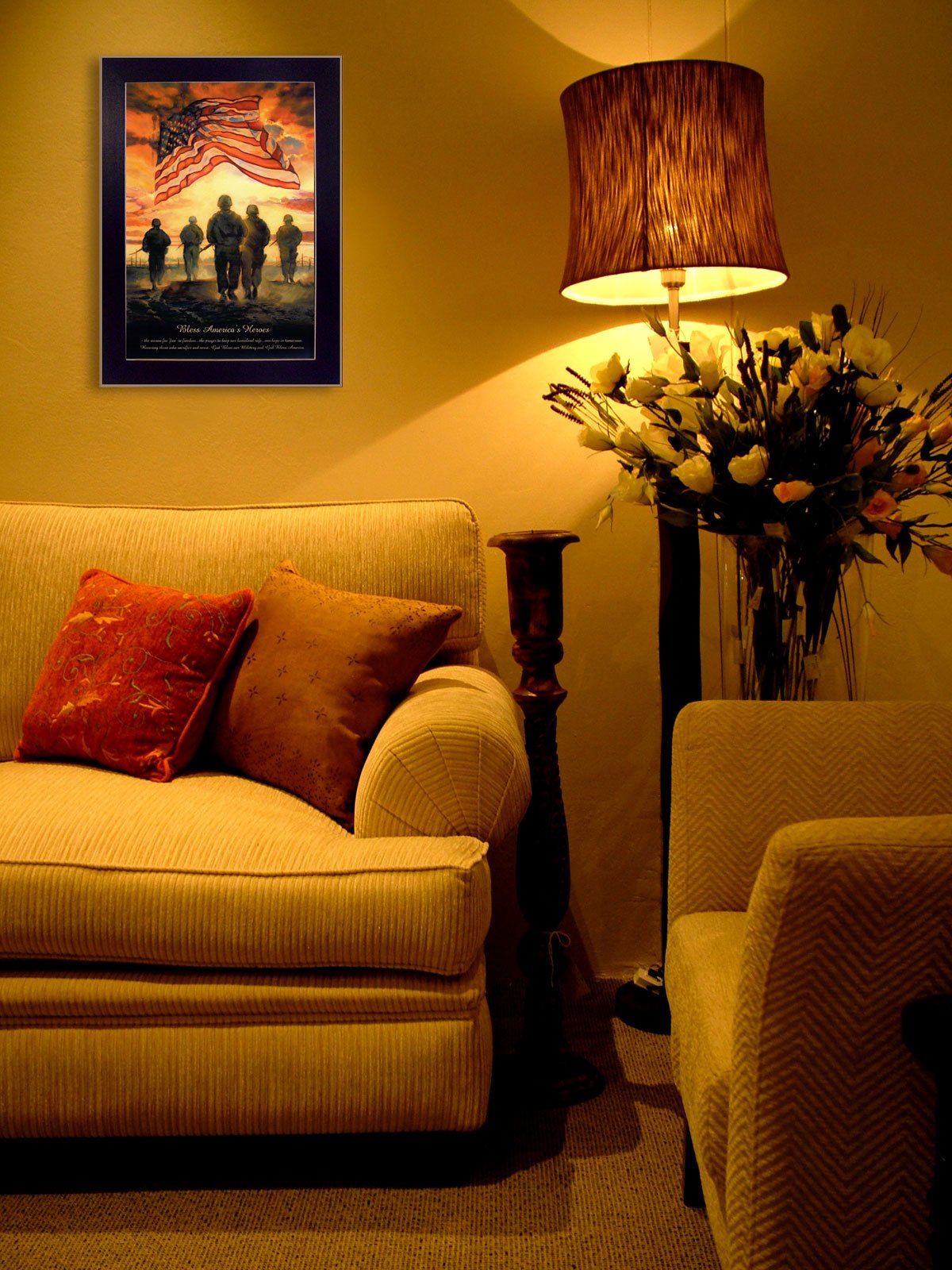 Home > "Bless Americas Heroes" By Bonnie Mohr, Printed Wall Art, Ready To Hang Framed Poster, Black Frame