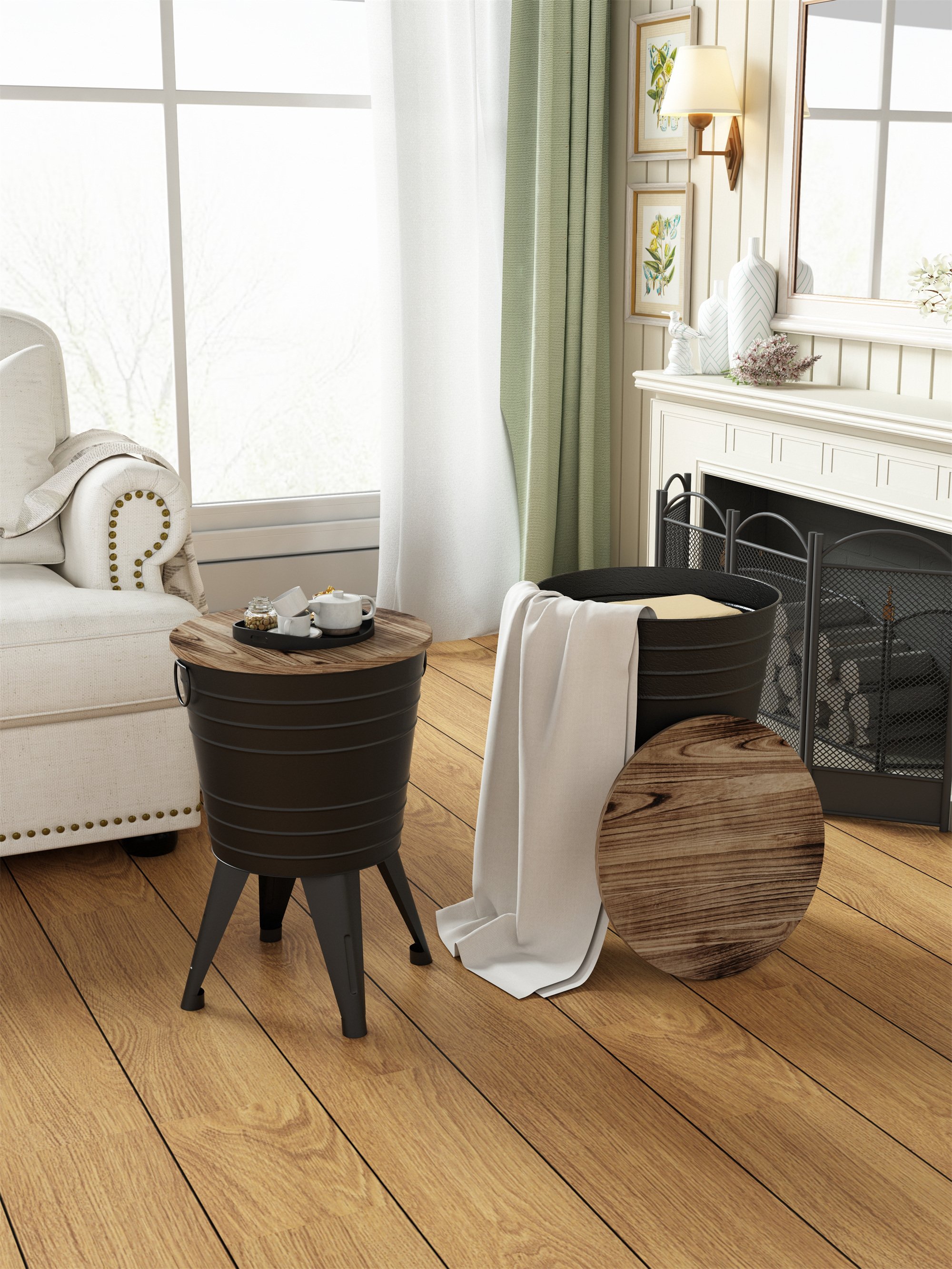 Package Size: 16.53*16.53*15.35 inProduct Dimensions: 16.14*12.99*22.44 in (Larg table)14.56*12.59*21.25 in (Small table)1 Box of 2 pc NW: 5.5 LBS (Large table) 4.74 LBS (Small table)GW: 14.4 LBSFarmhouse RusticSide Table - Constructed from sturdy metal with a distressed finish; Thisdistressed cocktail table will surely add a unique touch to your modernfarmhouse or living space.Set of Two - This farmhouse tub consists of a 2 piece set of galvanized steel storage binthat can also act as coffee or cocktail table or side table for a rusticappeal. 16.14*12.99*22.44 in (Largetable); 14.56*12.59*21.25 in (Small table)Great For Storage - As side table; end table; coffee table even a nightstand in your bedroom. Two tubs are perfect for blankets; pillows; throws; dog food; cat food; books etc.Perfect Sizes - The 16.4" and 14.5" tables nest nicely together and work beautifullywith a number of farmhouse furniture. An indispensable component of space saving living; these good-lookingpieces let you keep the stuff you need within easy access.