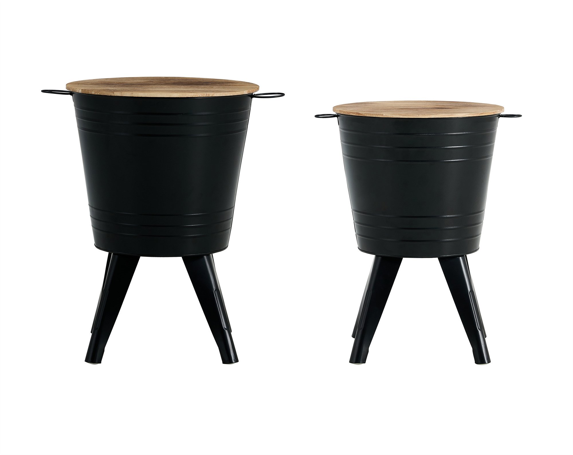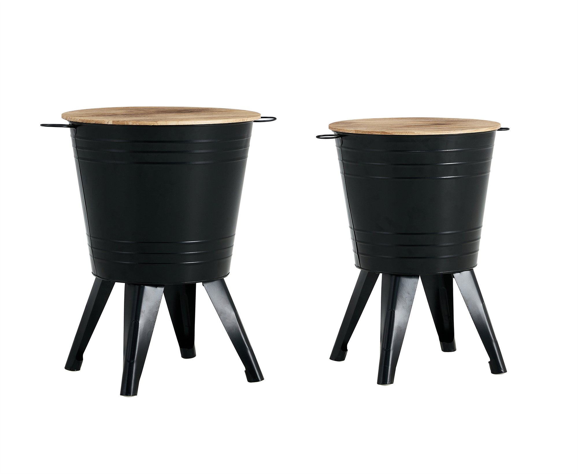 Farmhouse Rustic Distressed Metal Accent Cocktail Table with wood top-BLK, Set of 2