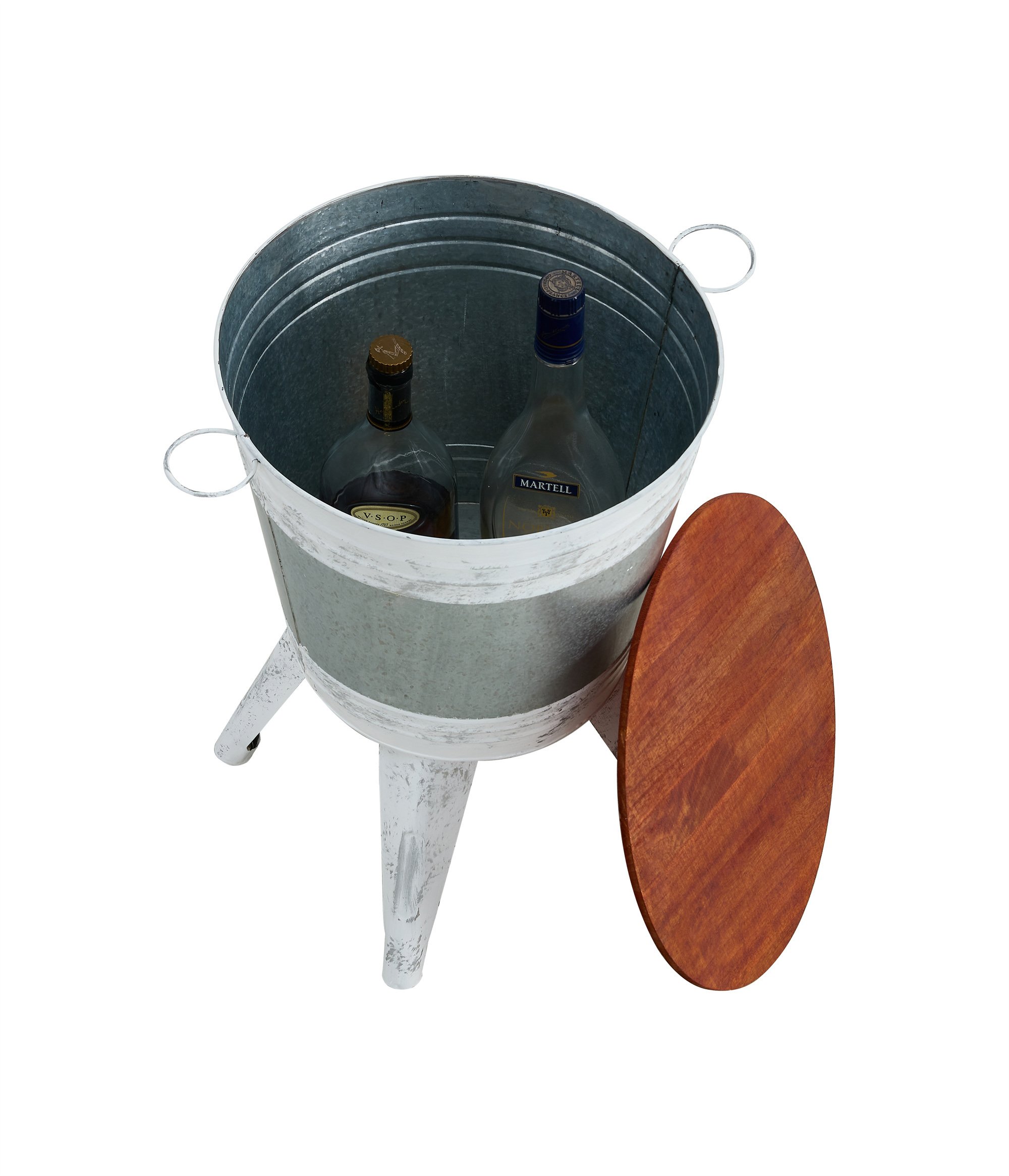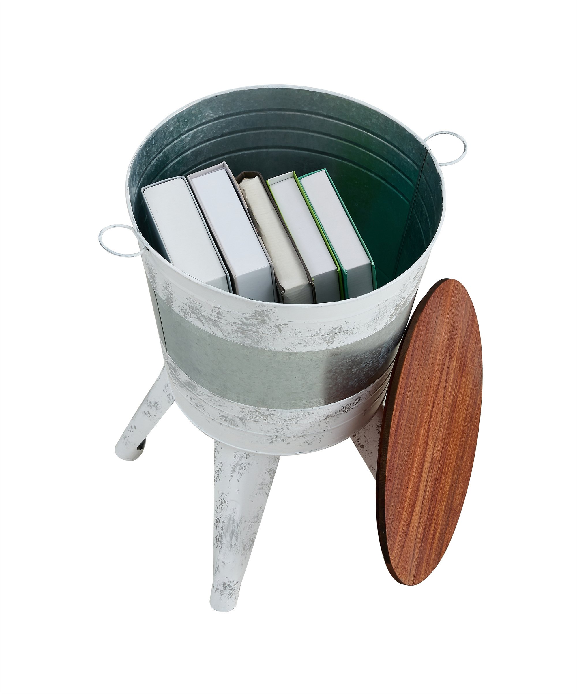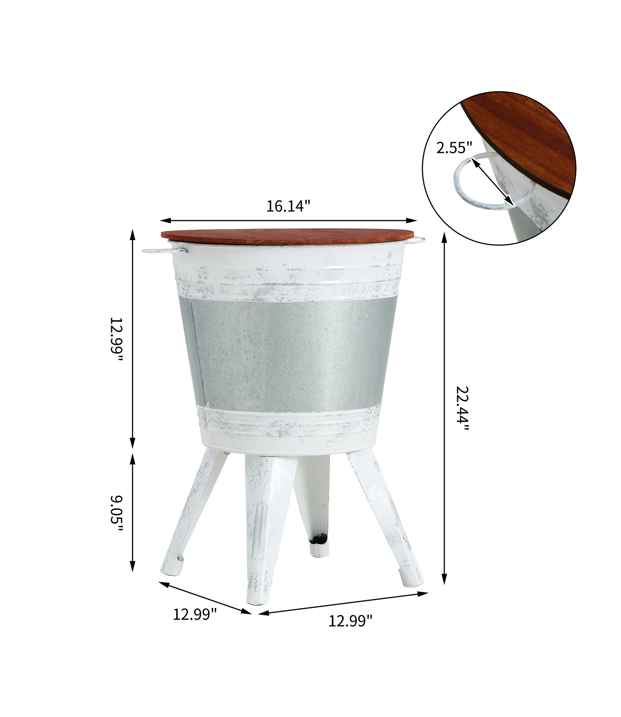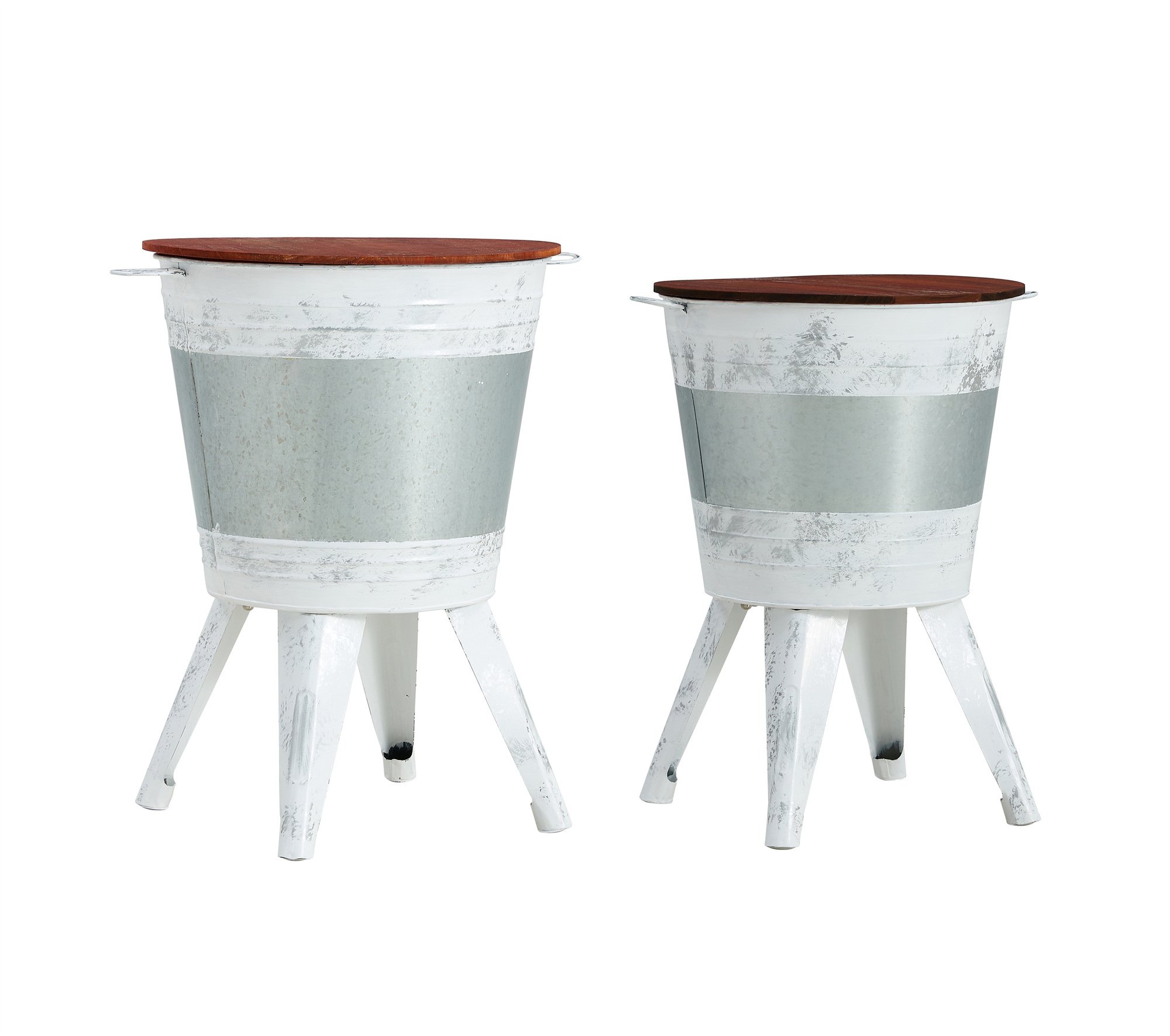 Farmhouse Rustic Side Table - Constructed from sturdy metal with a distressed finish; Thisdistressed cocktail table will surely add a unique touch to your modernfarmhouse or living space.Set of Two -This farmhouse tub consists of a 2 piece set of galvanized steel storage binthat can also act as coffee or cocktail table or side table for a rusticappeal. 16.14*12.99*22.44 in (Largetable); 14.56*12.59*21.25 in (Small table)Great For Storage - As side table; end table; coffee table even a nightstand in your bedroom. Two tubs are perfect for blankets; pillows; throws; dog food; cat food; books etc. Perfect Sizes - The 16.4" and 14.5" tables nest nicely together and work beautifullywith a number of farmhouse furniture. An indispensable component of space saving living; these good-lookingpieces let you keep the stuff you need within easy access.