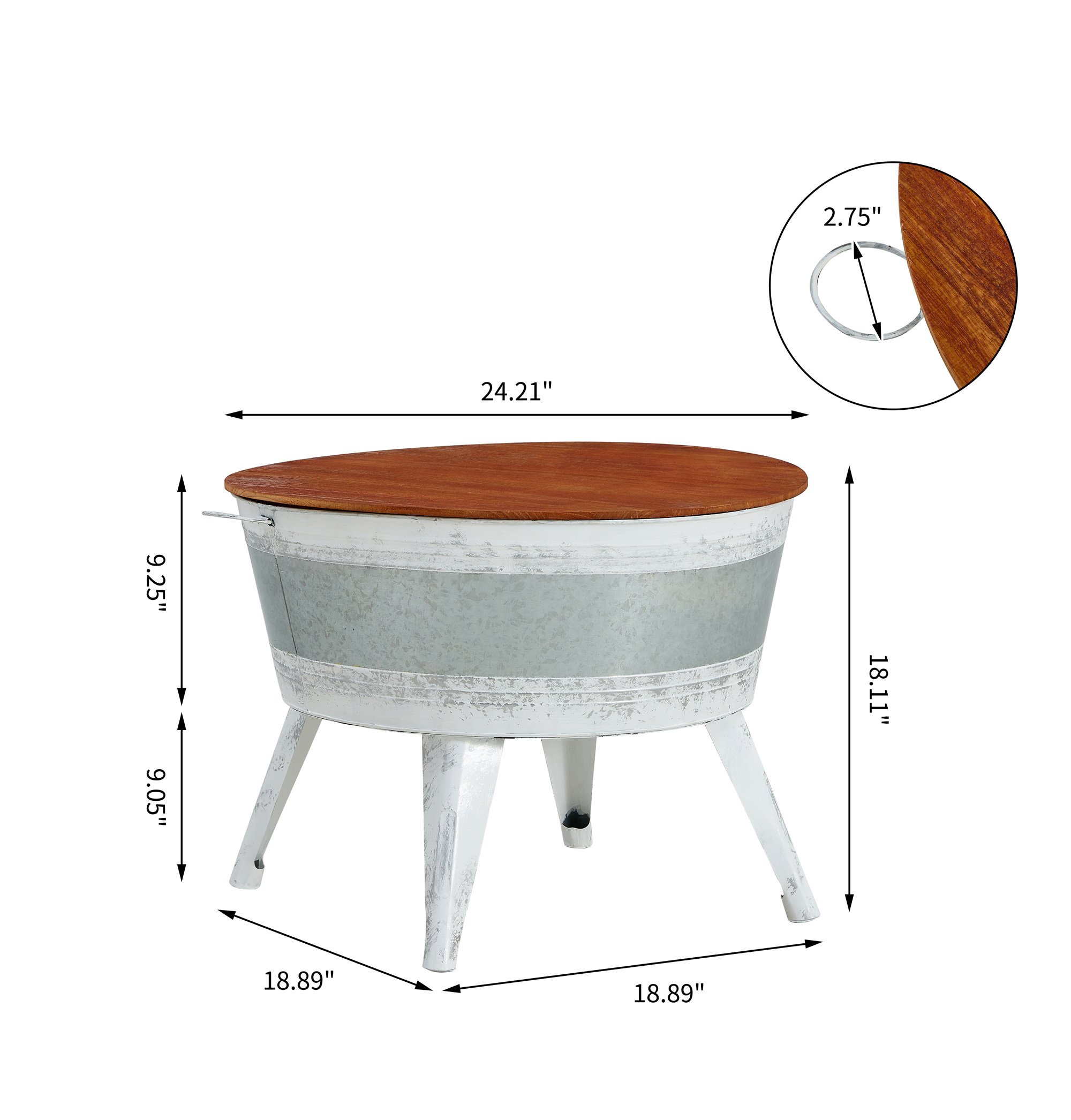 Home > Farmhouse Rustic Distressed Metal Accent Cocktail Table, wood top-WHT, 1PC