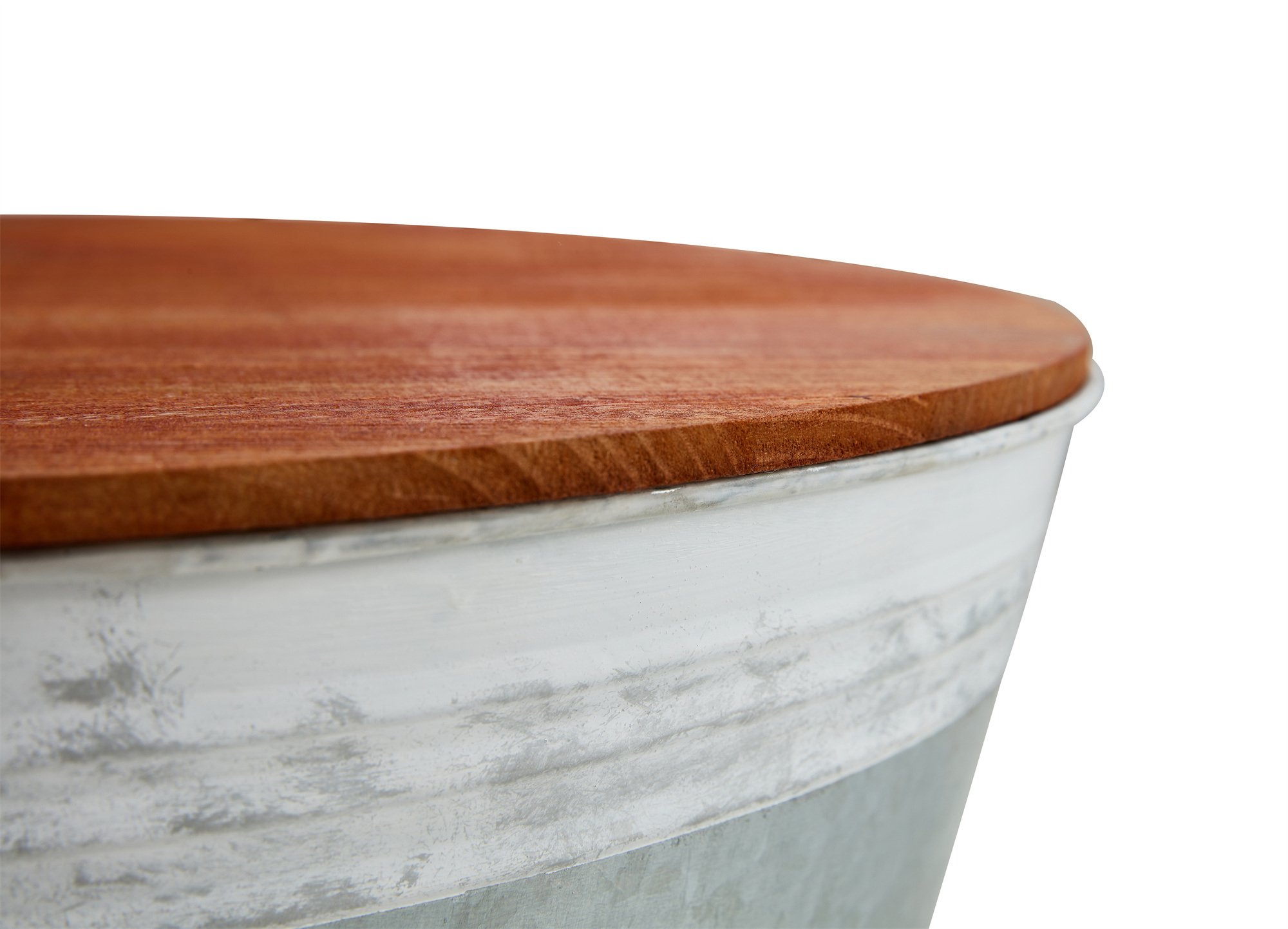 Package Size: 24.8*24.8*10.62 inProduct Dimensions : 24.21*18.89*18.11 inNW: 12.45 LBS GW: 17.63 LBSRustic Home Decor: Metal Finish that will add warmth to any room in the house. This is notonly an end table; it can also be used as a nightstand or side tables livingroom.Multifunctional: Side table that can be used as a farmhouse coffee table or storagebox or ottoman stool. Display as farmhouse style living room decor or rusticcoffee table.Perfect Size: This is a farmhouse end table that is 19" tall with 24" Top Diameter.Spacious for any kind of things in the house that you can stash inside. Storeblankets; pillows; throws; books etc.Portable; Sturdy; Strong; The farmhouse end tables are sturdy to not be easily tippedover because of the heavy bottom & strong enough to store heavy items. Canbe easily lifted and can be moved.