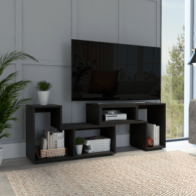 Extendable TV Stand Houston, Multiple Shelves, Black Wengue Finish
