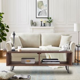 39 Inch Coffee Table with Slatted Tabletop for Living Room & Reception Room