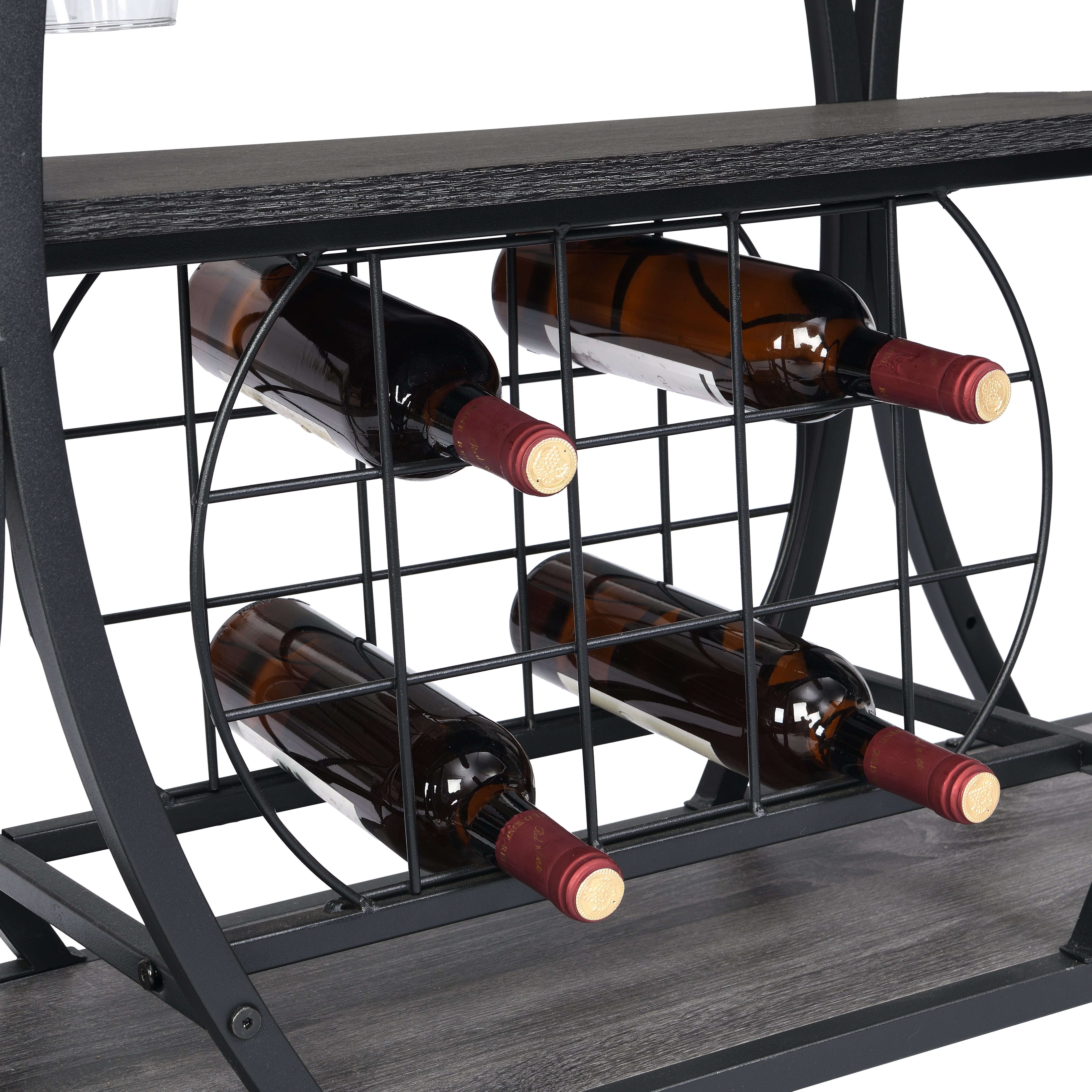 1.1. BOTTLE RACK AND WINE GLASS STORAGE: this bar cart features three levels for storing wine or placing trays,