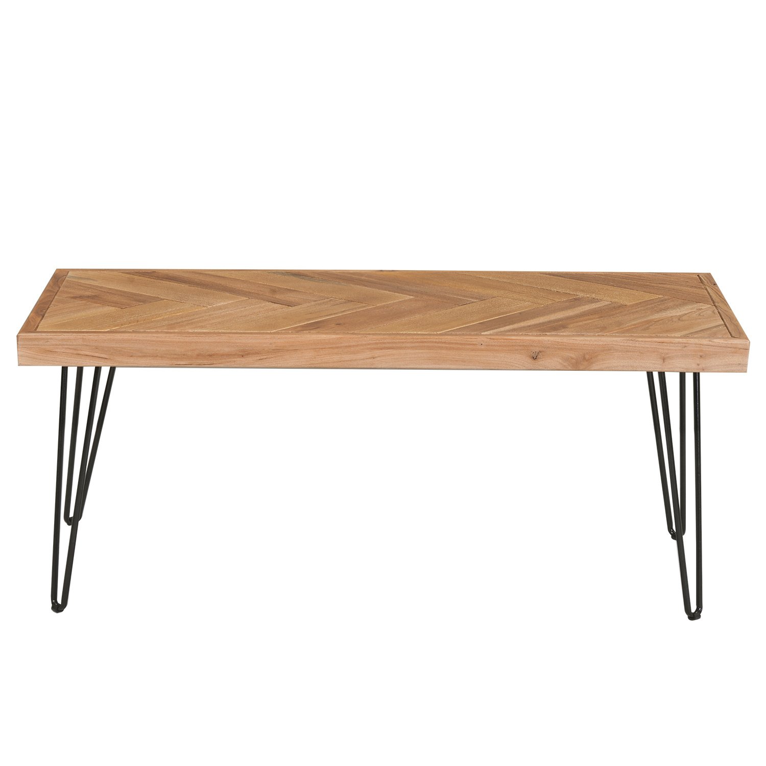 Modern Coffee Table, Easy Assembly Tea Table Cocktail Table w/Chevron Pattern & Metal Hairpin Legs, Nature Rough