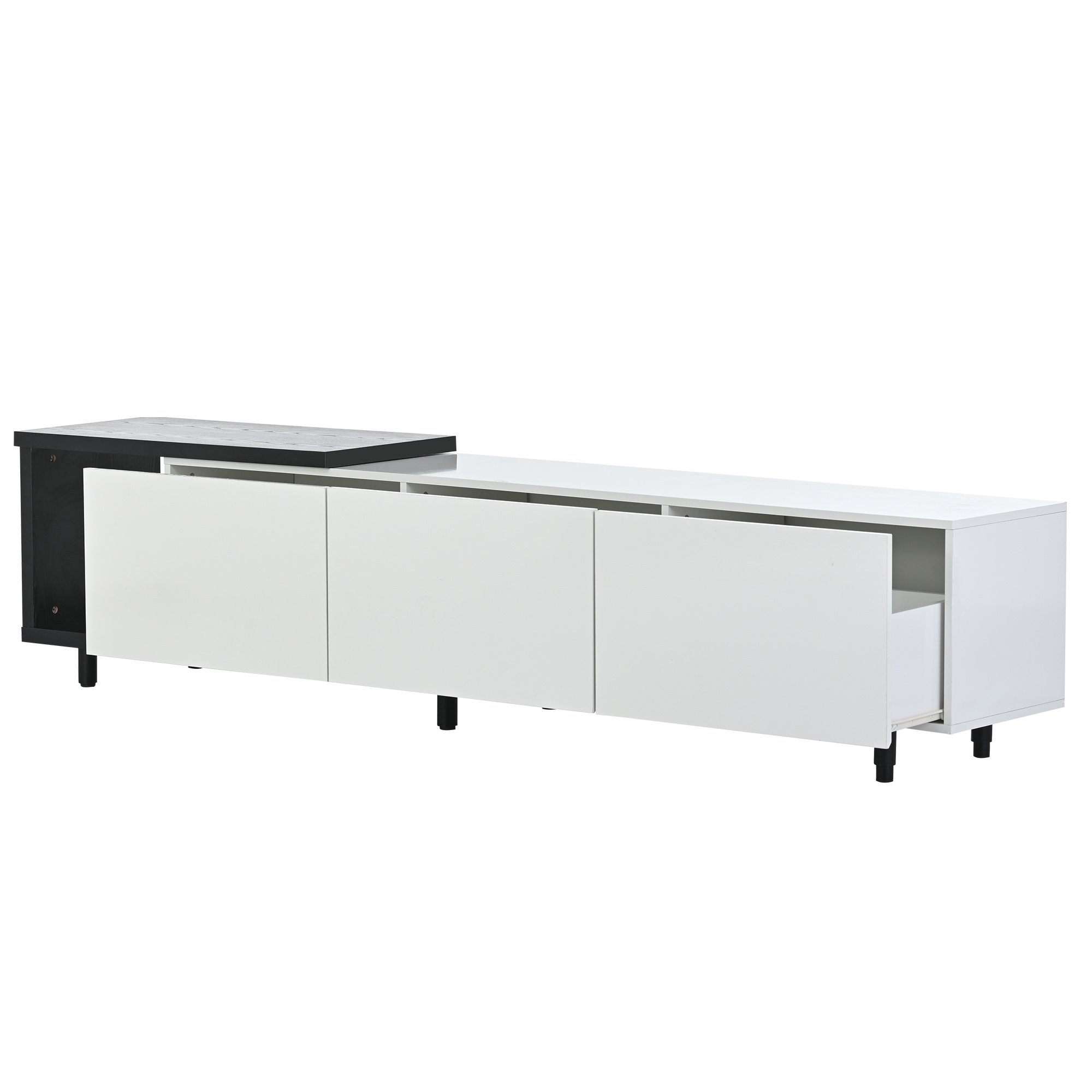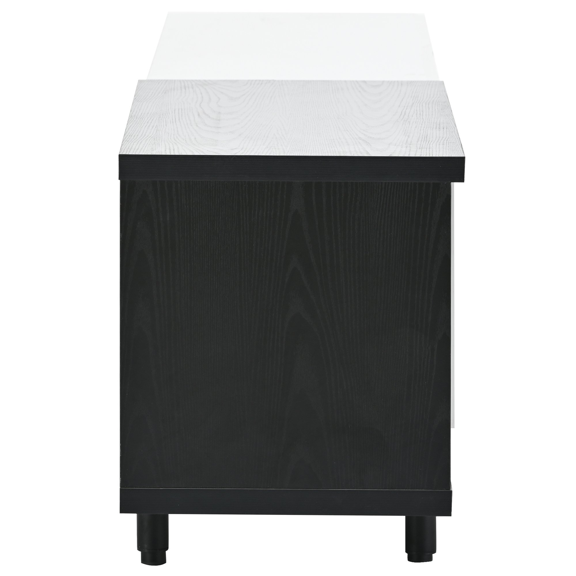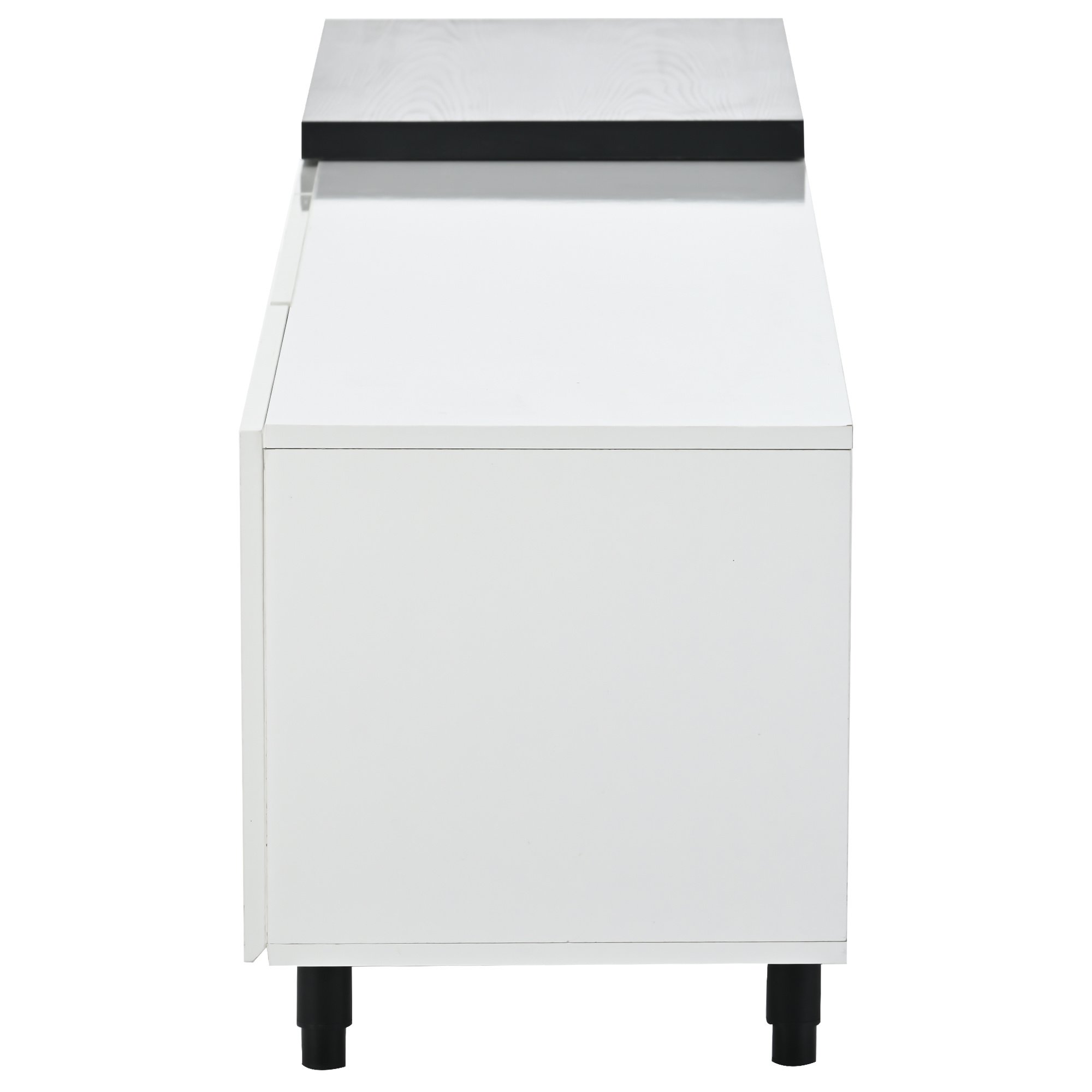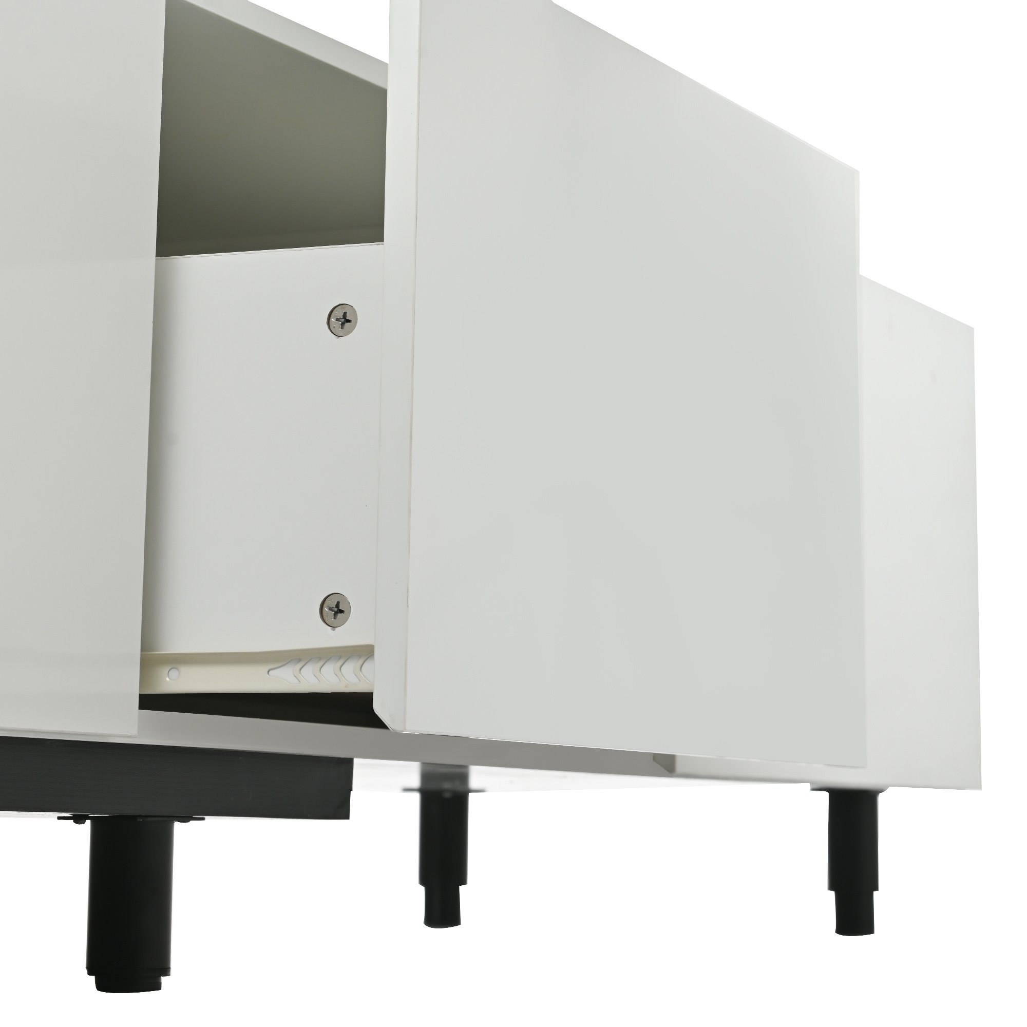 This TV stand brings elegance and modernity to your living room. Particle board with a clean-lined silhouette in black & white lacquered hue fits into your existing arrangement easily. Designed with a smooth and wear-resistant tabletop, this functional TV stand provides plenty of space for the TV screen and decorative accents, while it features 3 large drawers for internal storage. And offers extra and flexible storage space. Stylish, functional, and high-quality, this TV stand is a wise choice for your home furnishings needs.