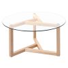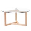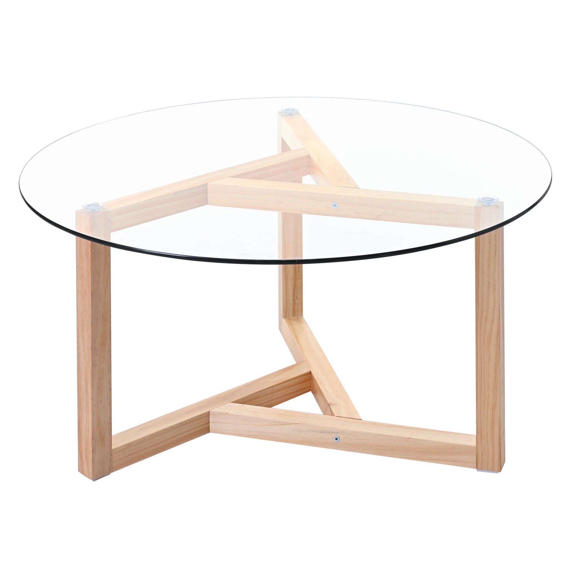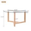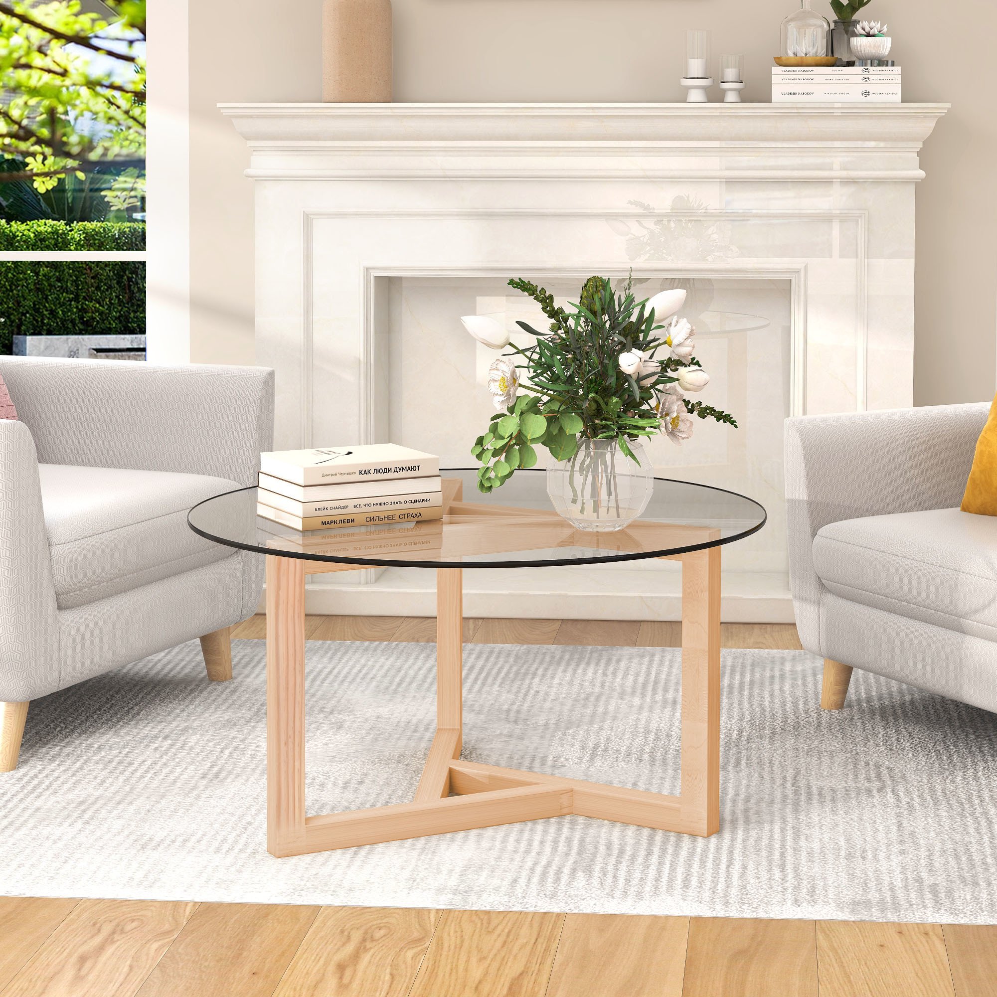ON-TREND Round Glass Coffee Table Modern Cocktail Table Easy Assembly with Tempered Glass Top & Sturdy Wood Base, Natural (OLD SKU: WF190112AAL)