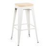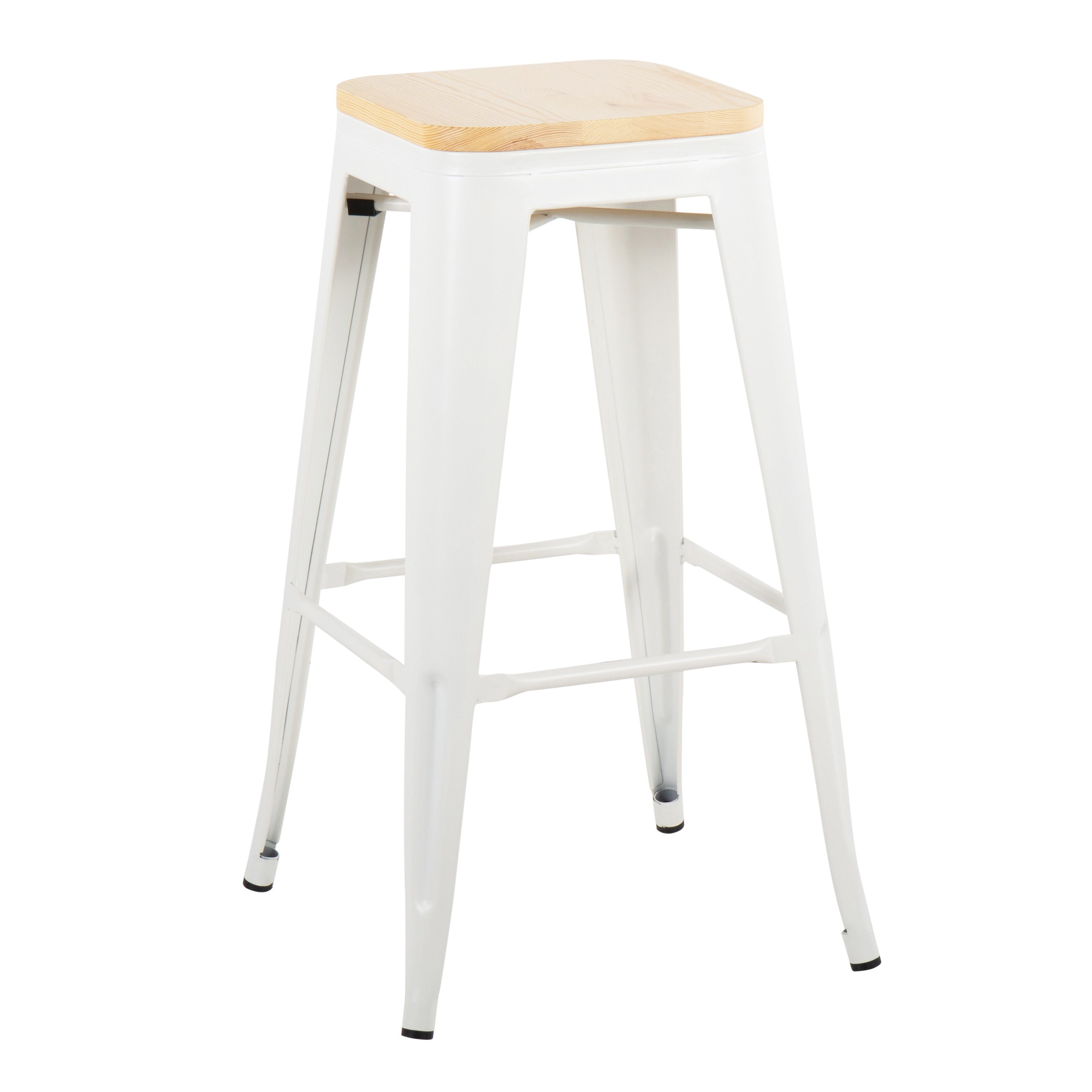 Oregon Contemporary Barstool in White Steel and Natural Wood by LumiSource - Set of 2